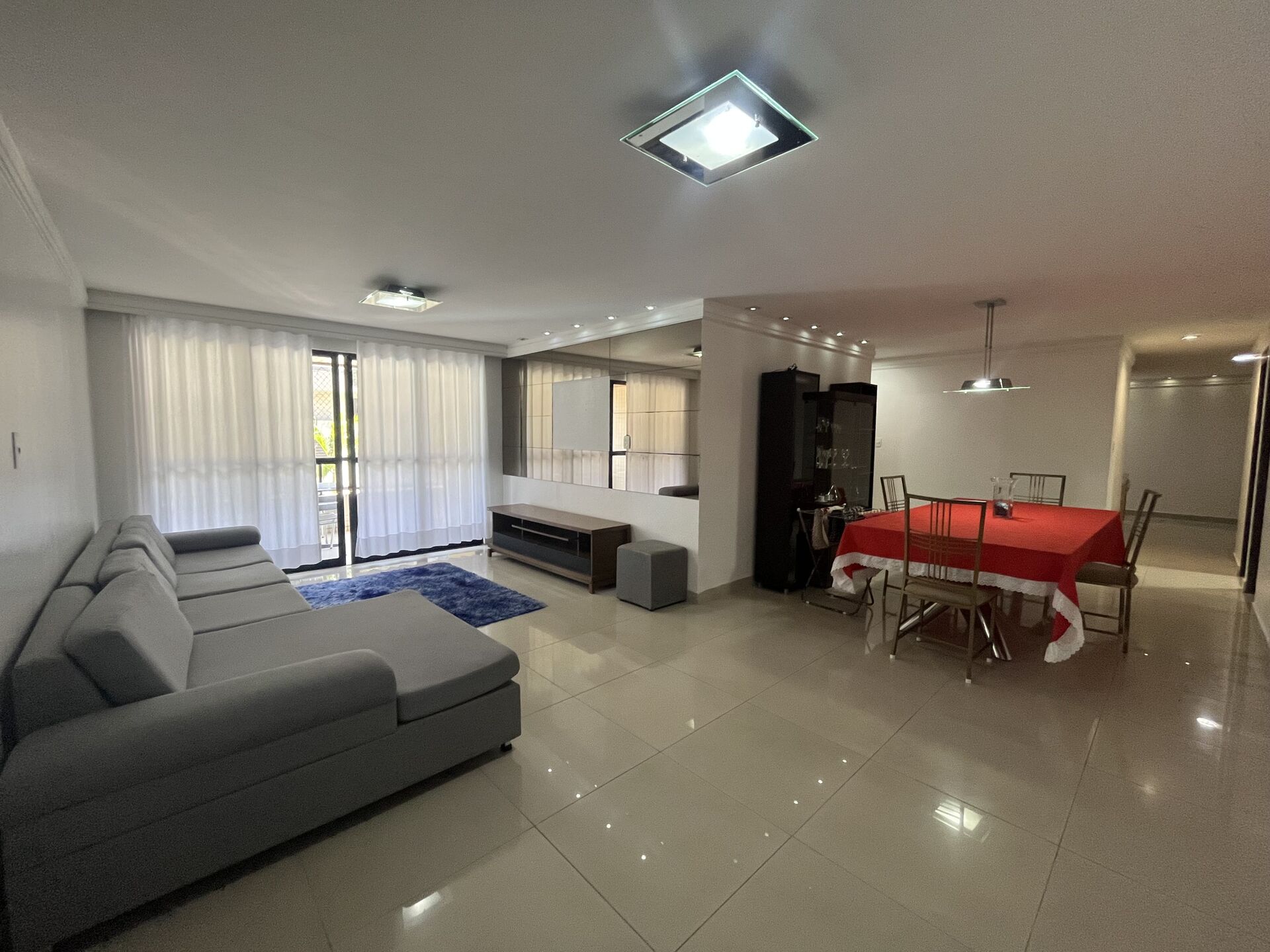 Composto por 04 quartos sendo 02 suítes 01 master com closet, sala de estar, sala de jantar, varanda, cozinha, área de serviço e DCE, 03 vagas de garagem com depósito.