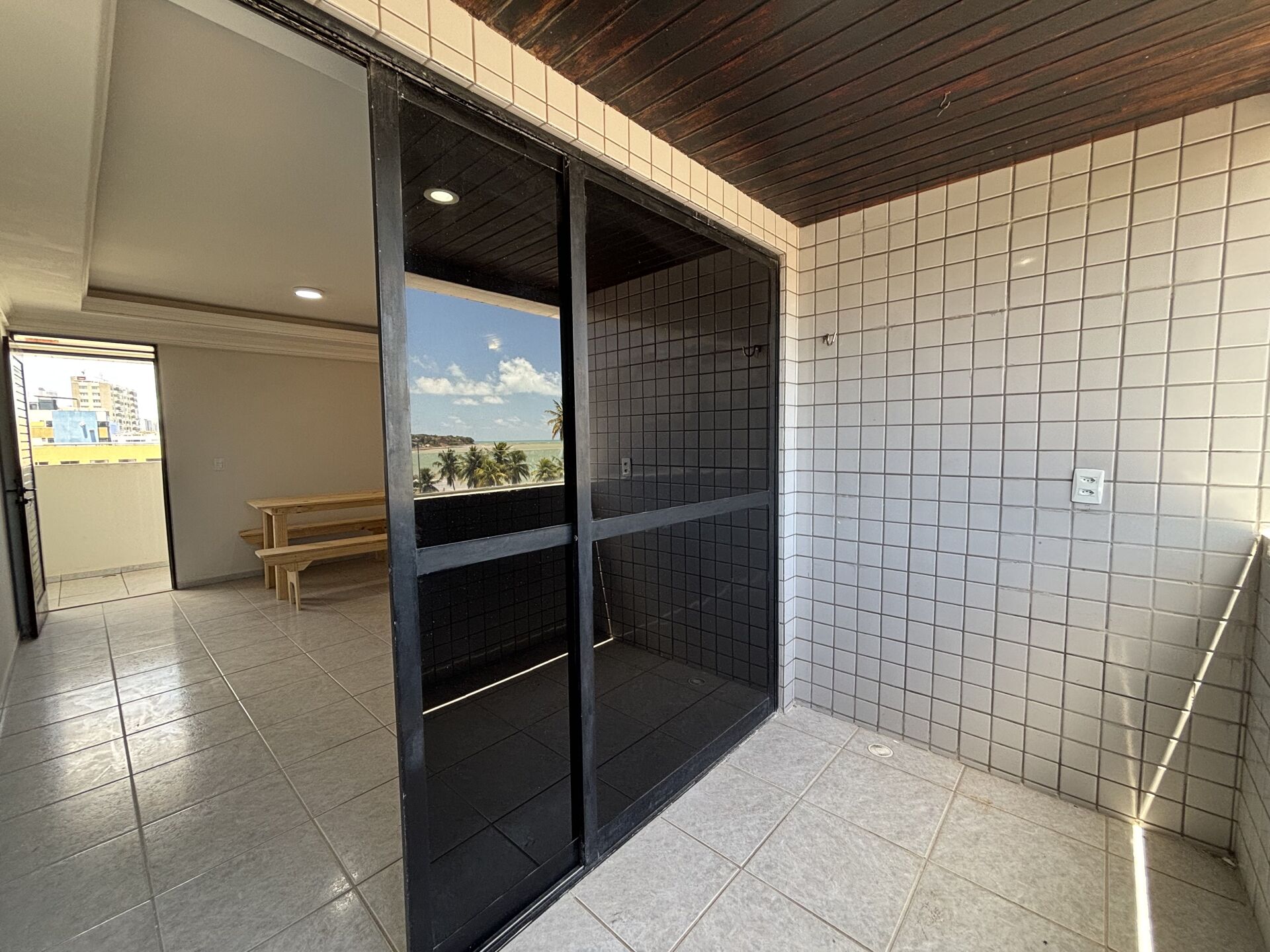 Te apresento este apartamento na posição sul, super ventilado com vista mar da varanda, da suíte e da suíte reversível.