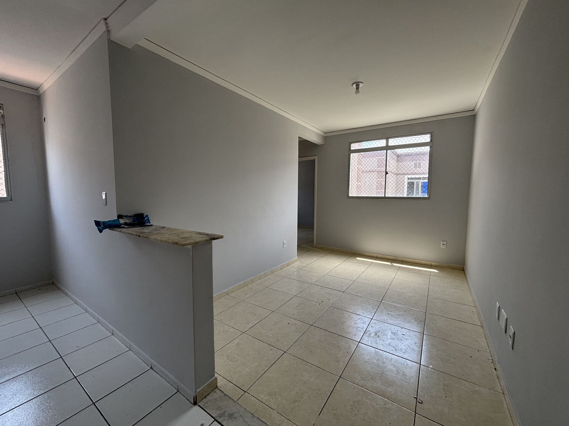 Composto por 44 metros, 02 quartos, 01 Wc social, sala para dois ambientes, cozinha com área de serviço e 01 vaga de garagem descoberta.