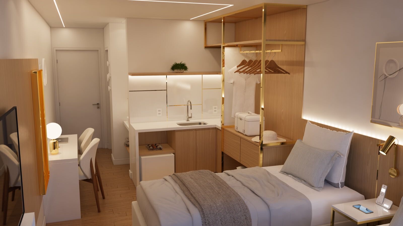 1 Dormitório, sendo 1 suíte1 Banheiro